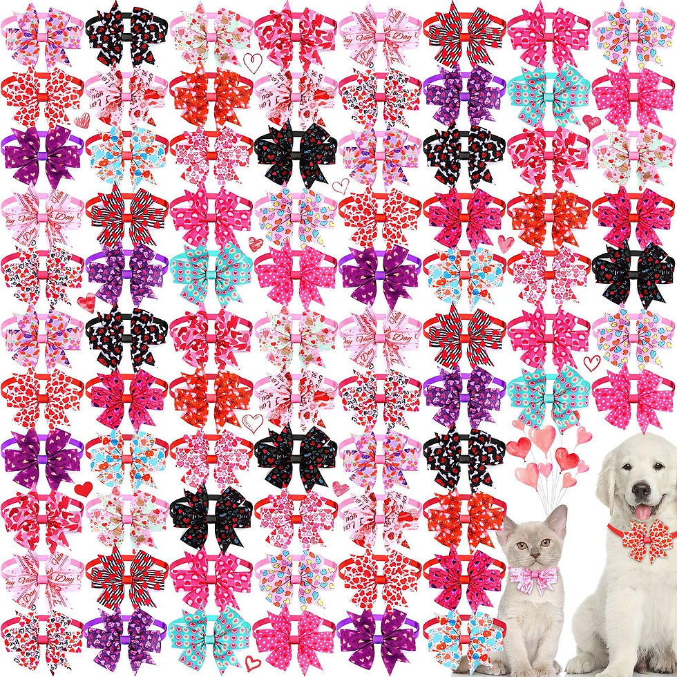 Maitys 80 Pcs Valentines Day Dog Bows for Dogs Valentine Dog Bow Tie Collars Pin